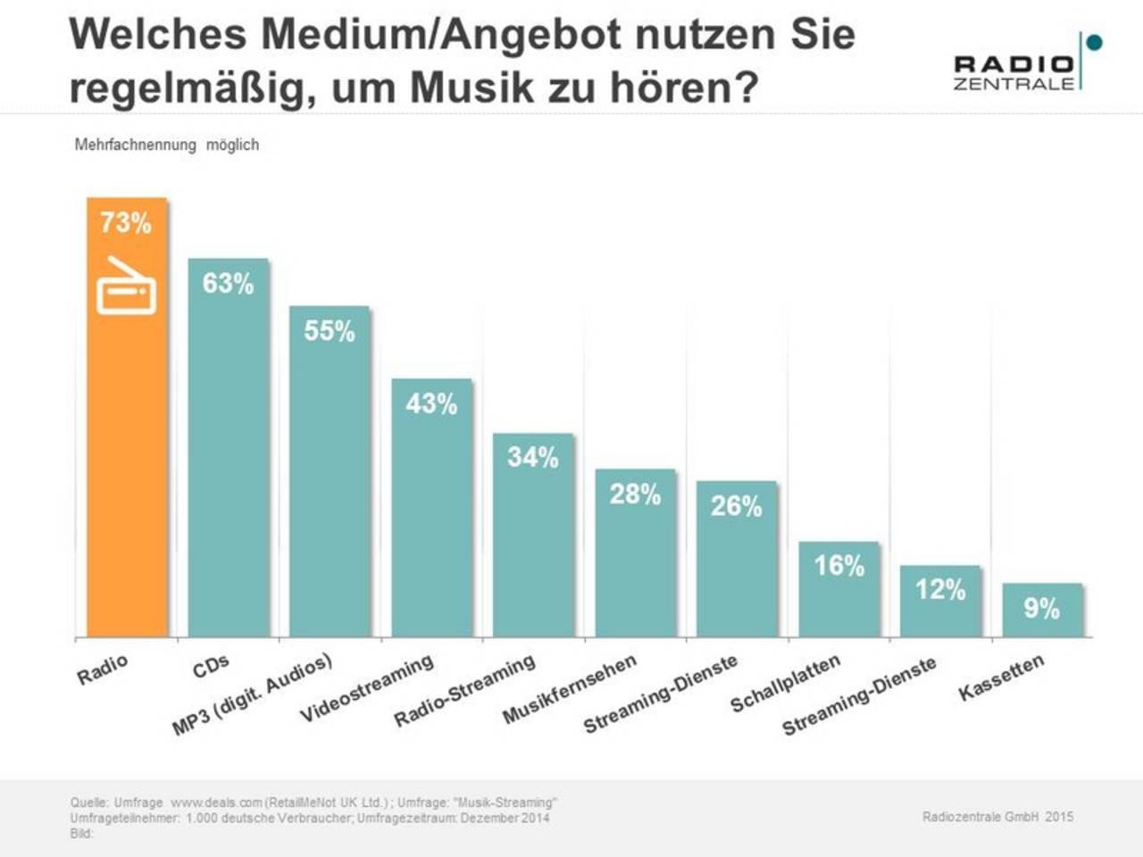 Nahezu alle Deutschen hören gerne Musik (98%), und rund drei Viertel davon am liebsten über das Radio. Das hat deals.com in einer repräsentativen Umfrage unter 1.000 deutschen Verbrauchern herausgefunden.
