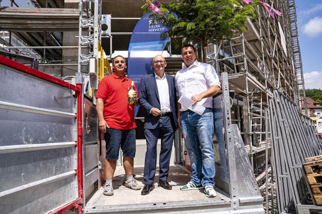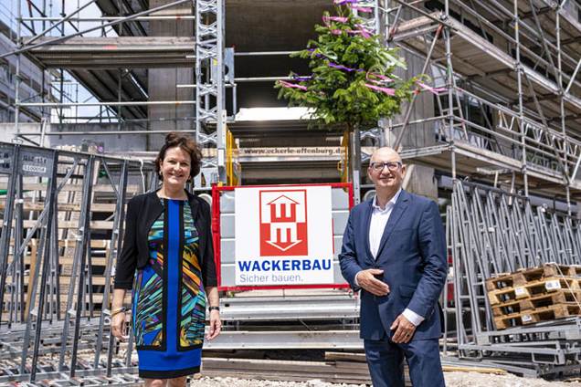 Der Rohbau des neuen Bürogebäudes der SWR Media Services am Standort Baden-Baden steht. Am 9. Juli 2021 wurde Richtfest gefeiert - Corona-bedingt etwas anders als üblich.