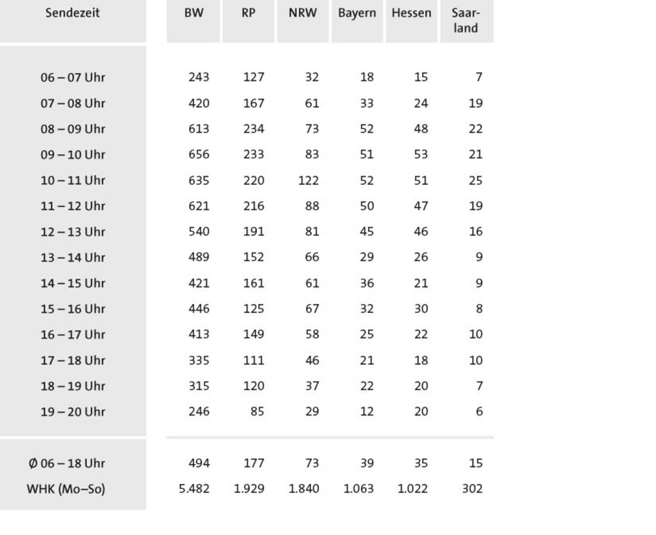 - wird von 870.000 (Mo–Fr) bzw. 839.000 (Sa) Hörer*innen gehört.