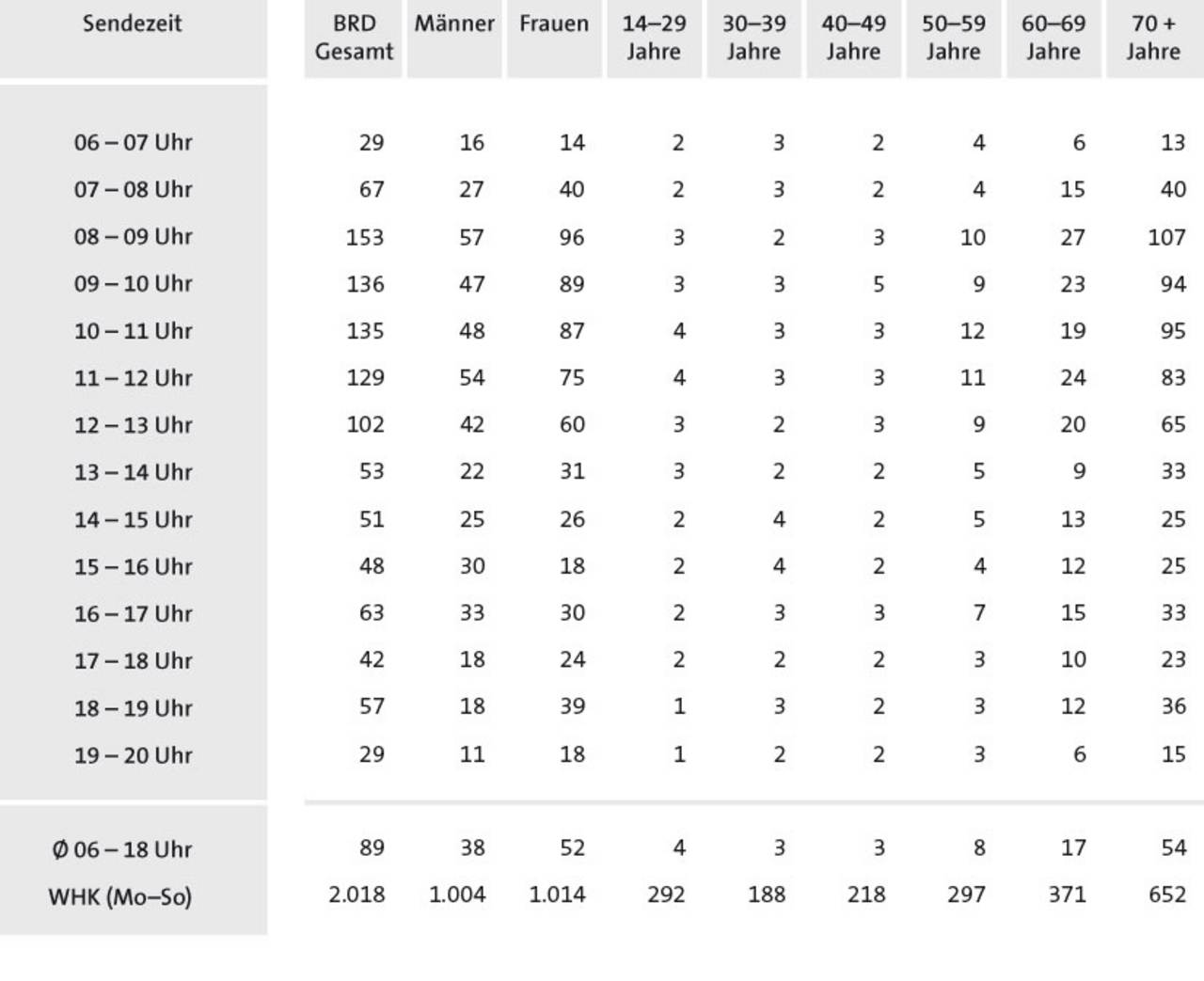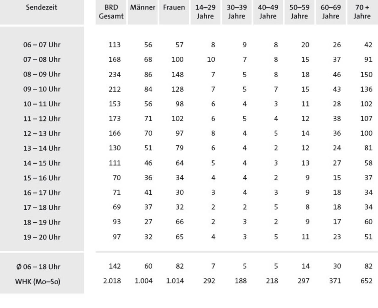 - Mit einem Zielgruppenanteil von über 85% wird die Zielgruppe 50+ optimal erreicht.