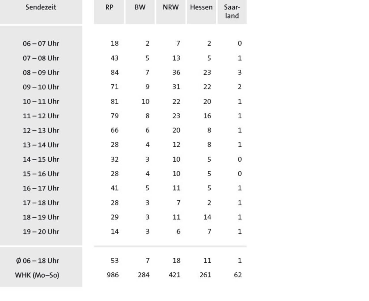 - wird von 142.000 (Mo–Fr) bzw. 89.000 (Sa) Hörer*innen gehört.